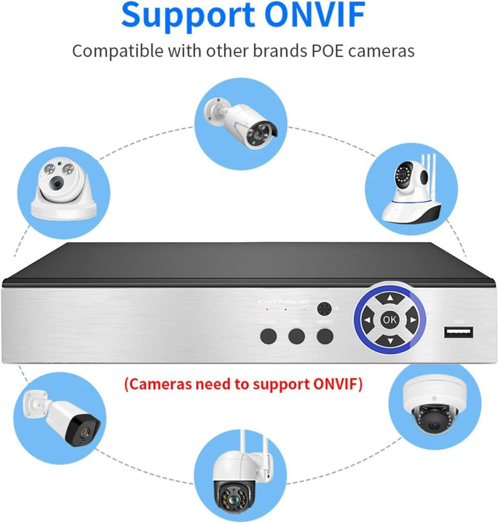 4K 8 csatornás POE NVR, GANMBHER hálózati videórögzítő biztonsági kamerarendszerekhez, 4K/5MP/4MP/3MP/1080P POE IP kamerák támogatása, arcfelismerés, 24/7 felvétel + 8 Kamera