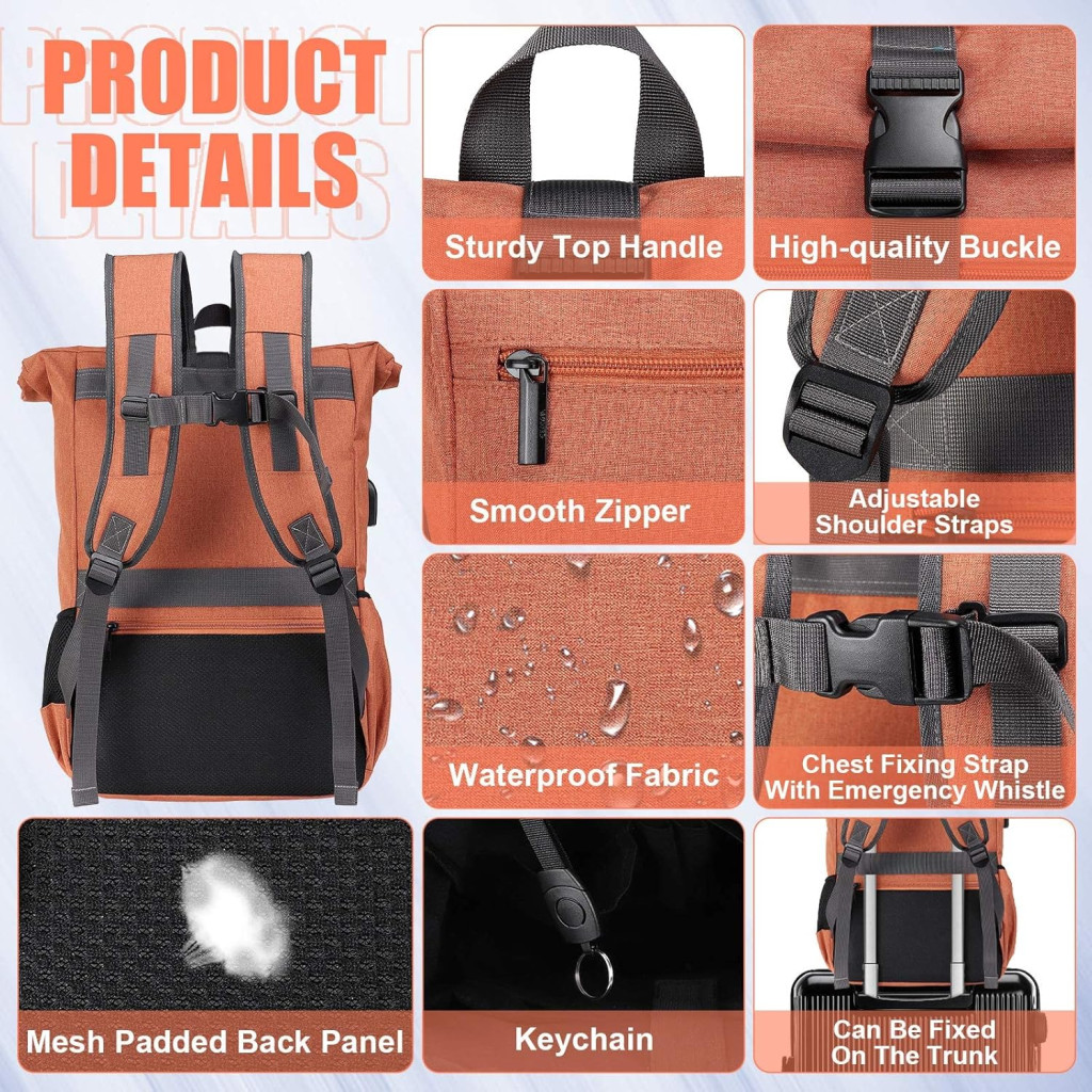 Különlegesség: a hátizsák változtatható kapacitása 17-24 liter. Feltekerhető, mindennapi használatra alkalmas, kihajtható, hegymászáshoz és utazáshoz, a hátizsák USB- és fejhallgató-csatlakozóval rendelkezik a könnyű utazás érdekében, a hátizsák alkalmas bőröndök szállítására, és a hátán található vállpánt segítségével a bőröndhöz rögzíthető, csökkentve az utazás terhét.